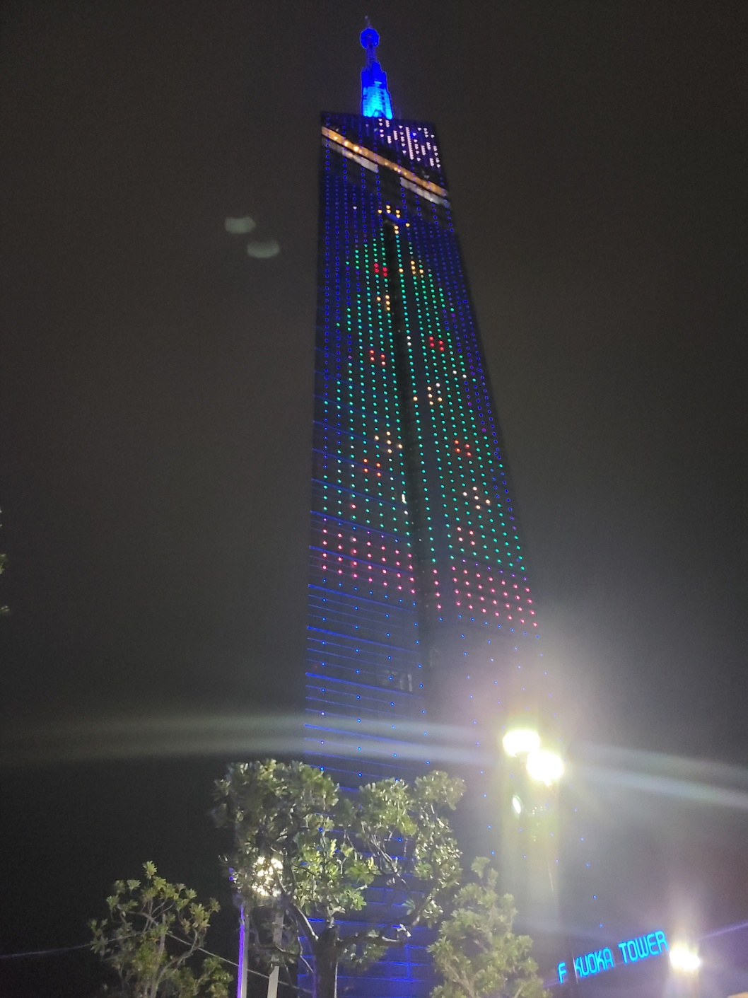 크리스마스라고 트리모양으로 조명을 켜놨네요.. 이쁩니다