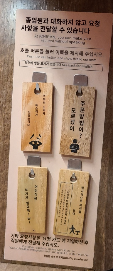 그리고 신기했던게, 오른쪽에 보시면 팻말로 서버에게 요청사항을 전달할 수 있습니다.
